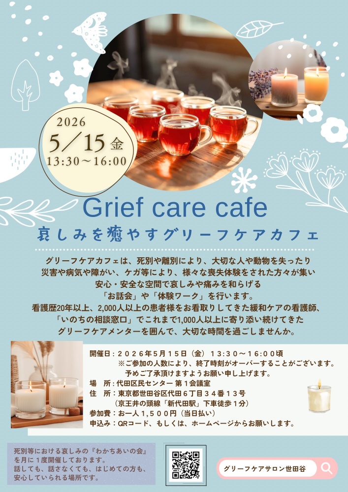 東京都世田谷区でグリーフケアカフェ等を開催しております。